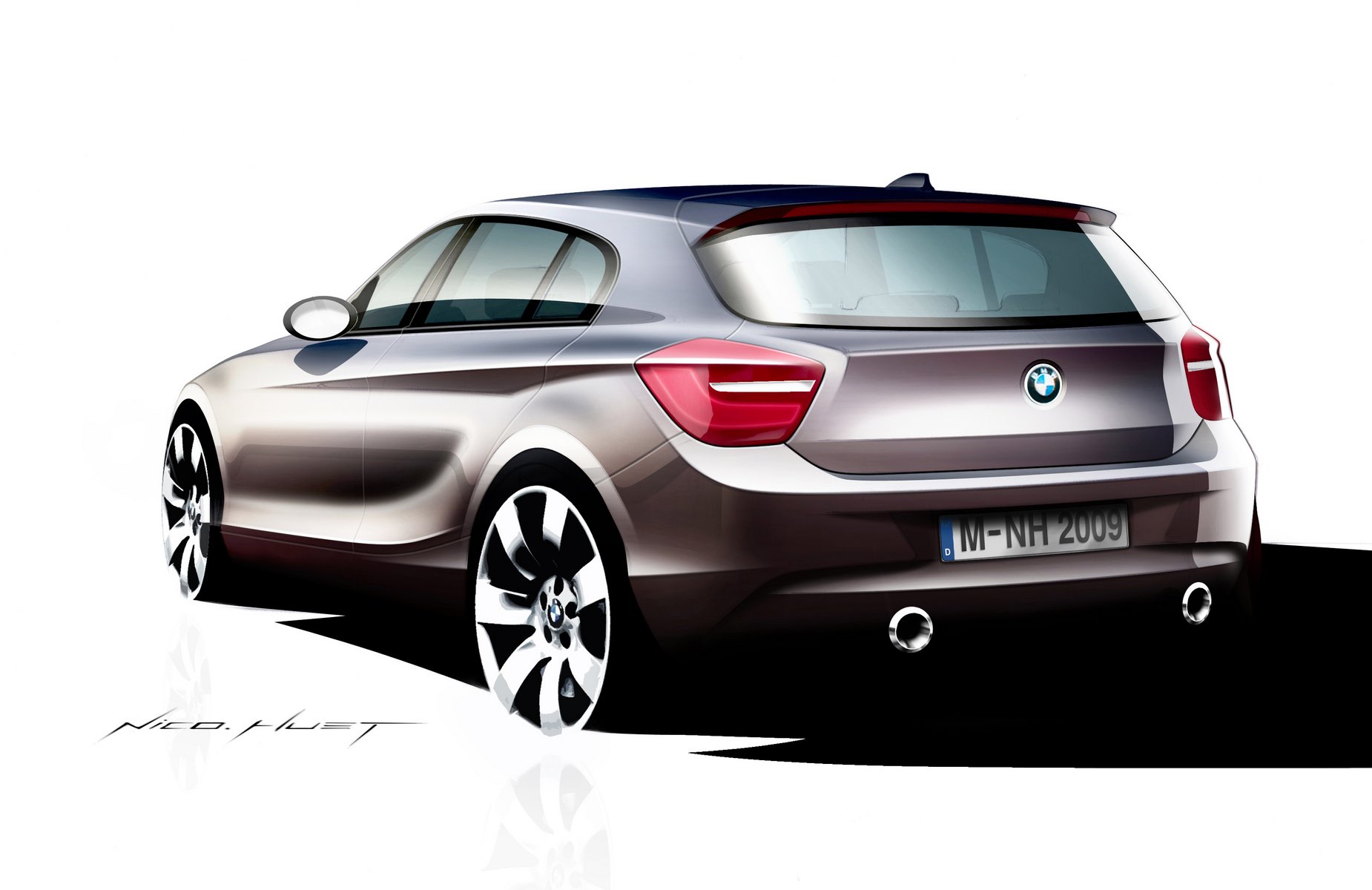 The design quality of the new BMW 1 Series, which is unique in the compact segment, is particularly evident in the distinctive BMW lines and dramatically curved surfaces. The characteristic BMW swage line starts at the front sidewall and rises continuously to the rear lights, its boldness giving powerful emphasis to the shoulder area, with the door openers neatly integrated into the swage line.