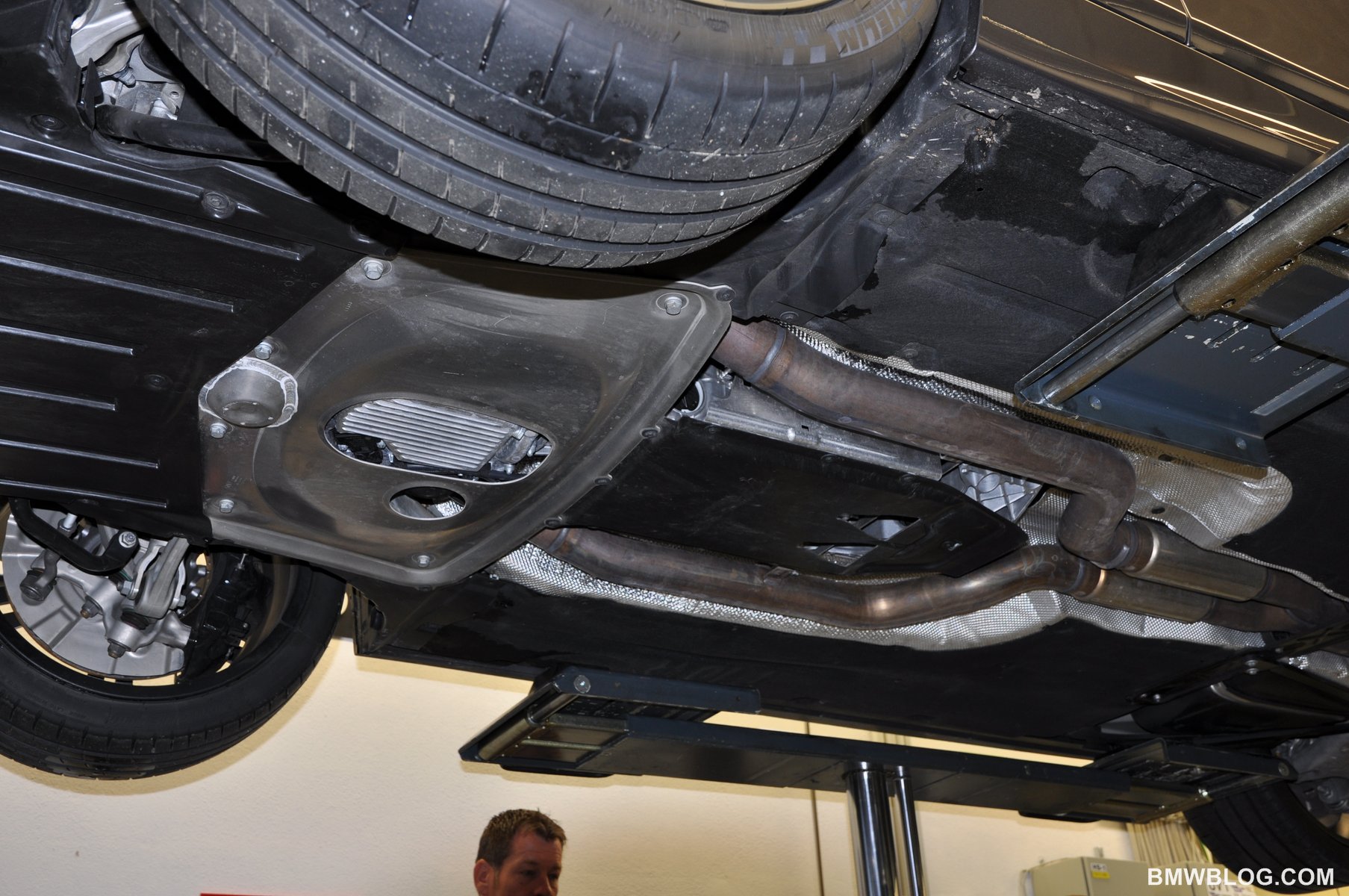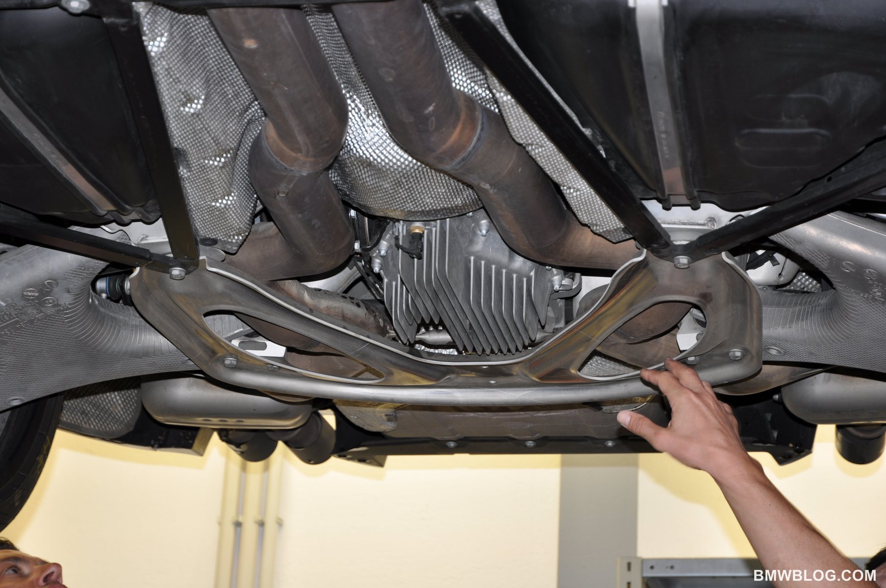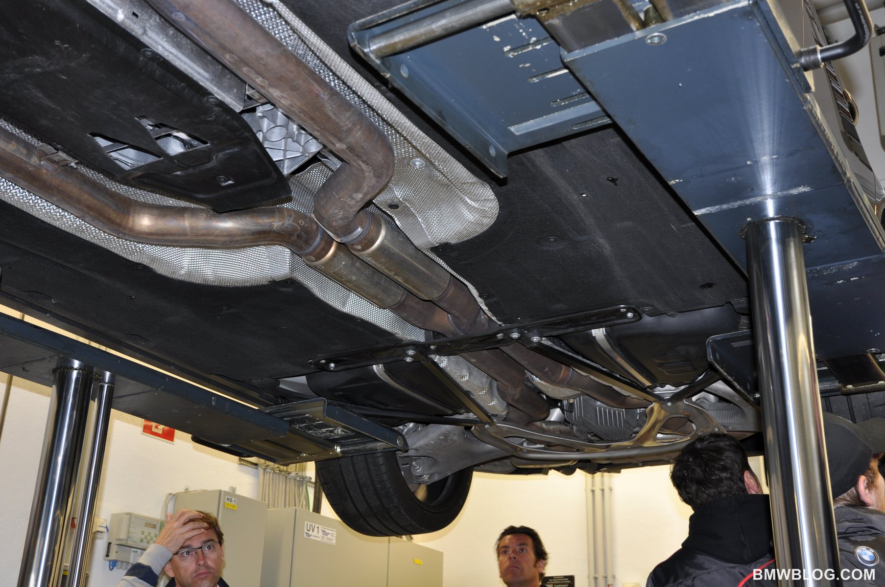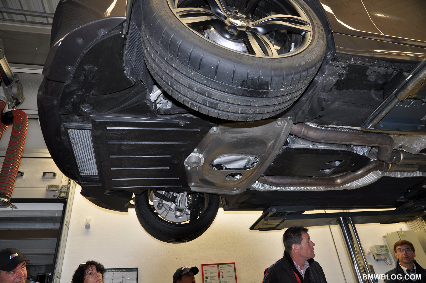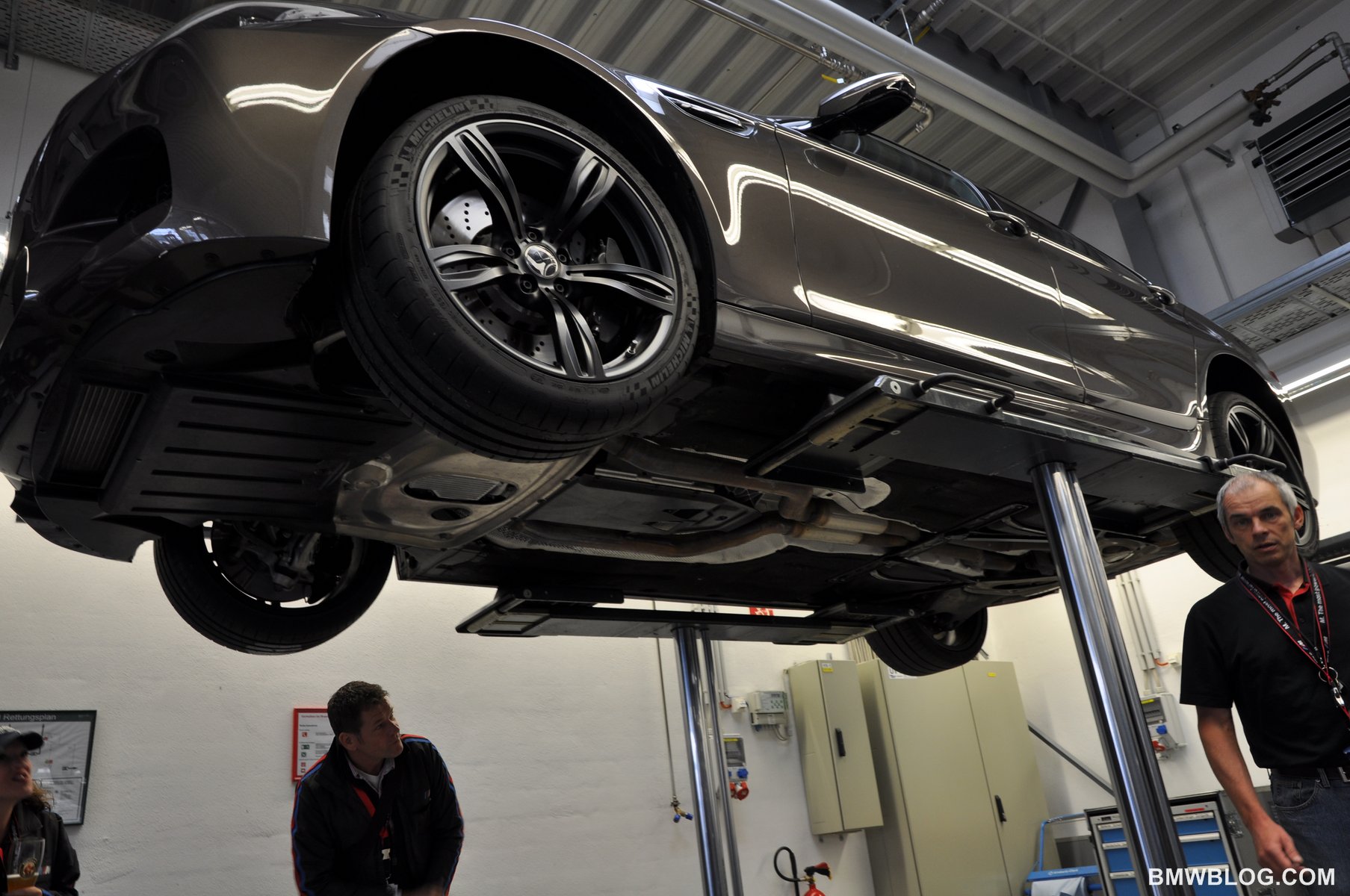 At the BMW M Test Center located a stone’s throw from the Nurburgring Racetrack, BMWBLOG had the unique opportunity to view the underbody of the new M5 while up on a hoist.  We also had the opportunity to learn of a few technical details about the car from Albert Biermann, BMW M Head of Engineering, while peering under the hood.  We can confirm the following technical details about the new M5.