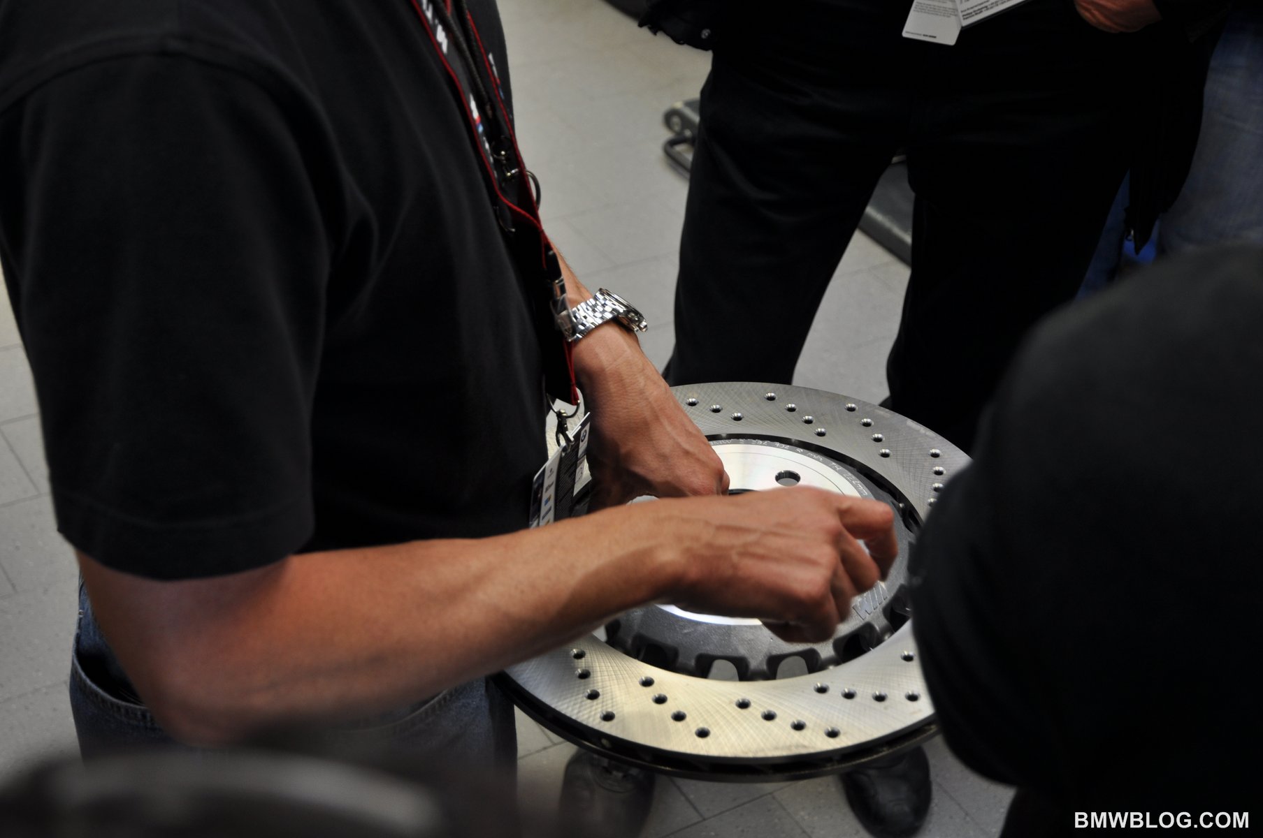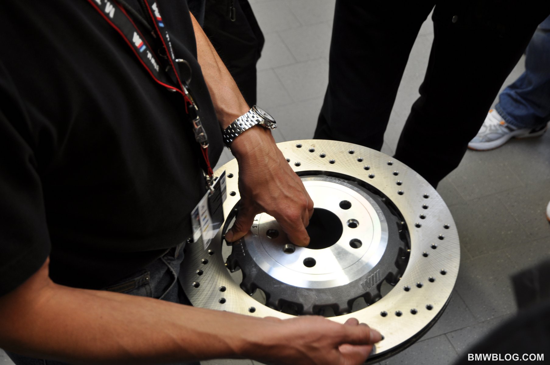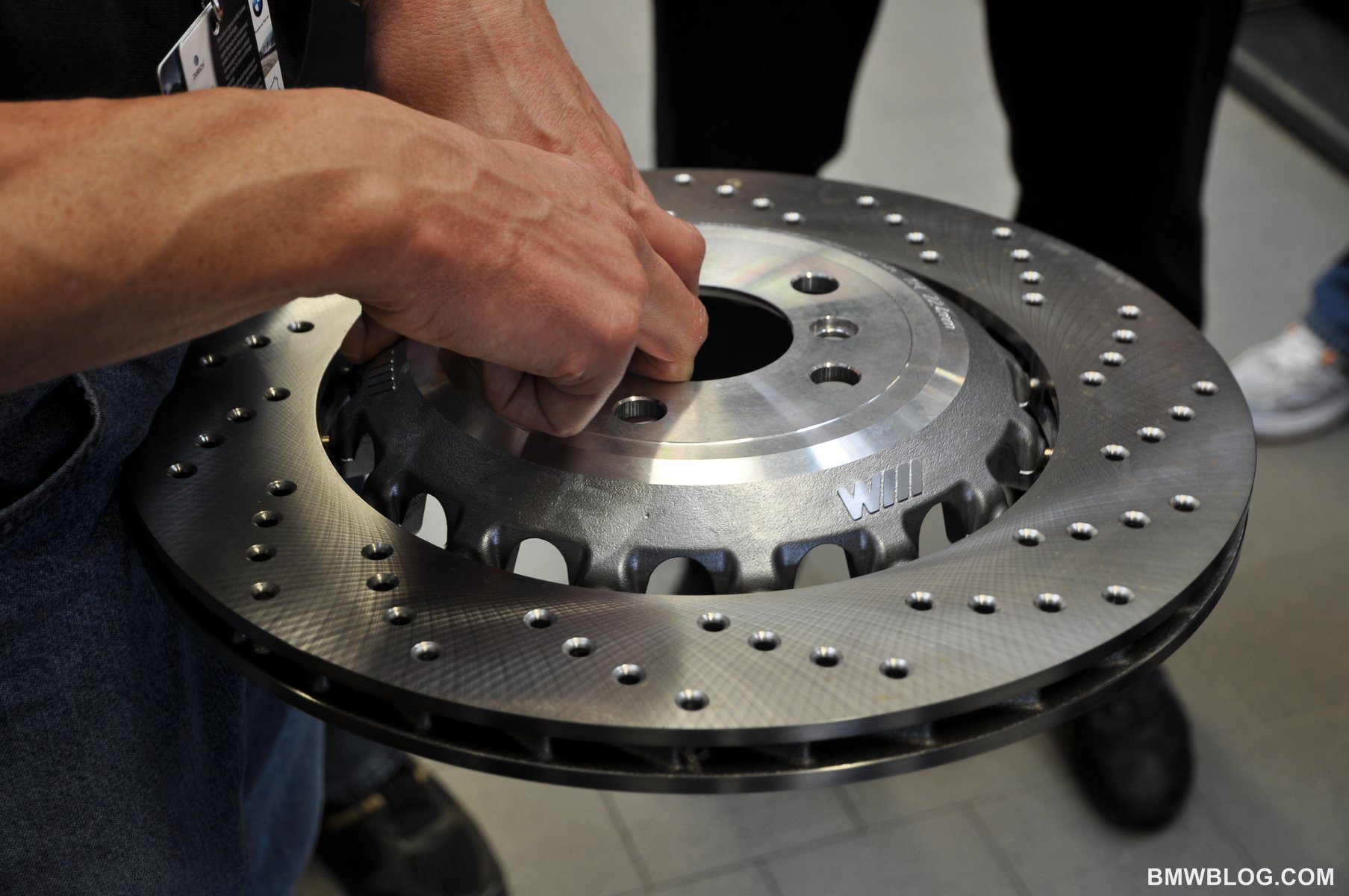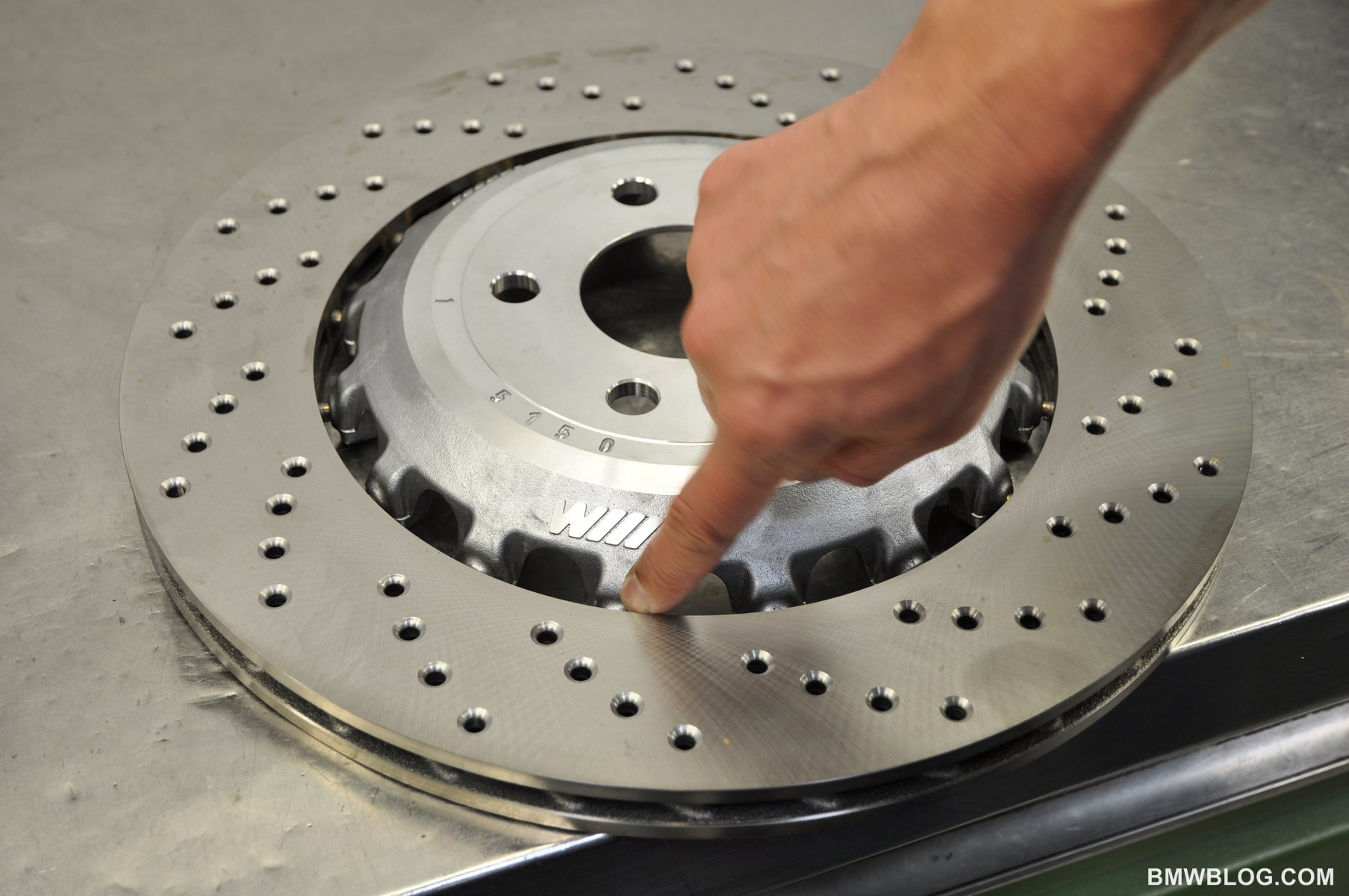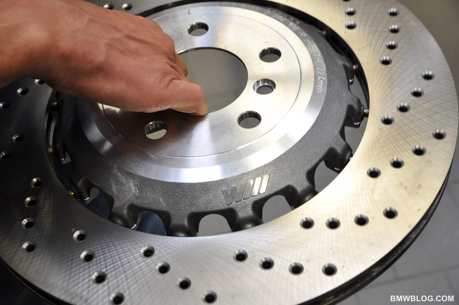 To slow it all down BMW have installed brakes which feature the combination of an aluminum hub with an outer steel rotor.  The rotor is mounted to the hub via 16 steel pins which allow for up to 1 mm of expansion between the hub and rotor as they expand at varying rates based on their respective metallurgy.