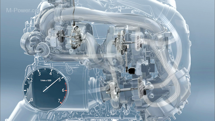 Playing a central role in this increase in power is M Performance TwinPower Turbo technology. For the first time, a BMW engine will feature three turbochargers. The size, arrangement and interplay strategy of the turbos are designed to guarantee maximum power delivery across a wide rev band. The system comprises two relatively small turbochargers and one large turbo, which join forces precisely to deliver the amount of power required.