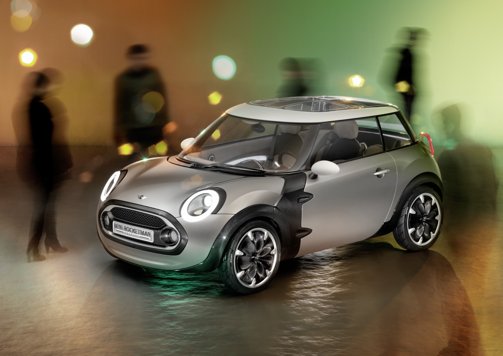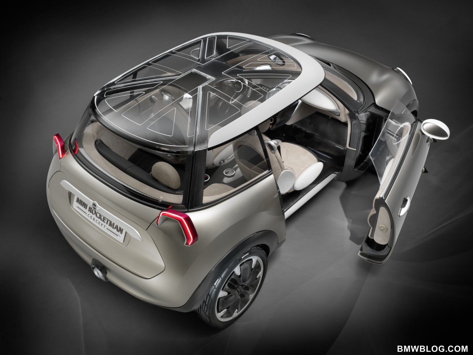 is necessary for safety.The roof of the MINI Rocketman Concept also puts on an extraordinary light show. The full-surface glass roof is segmented by illuminated braces to recreate the look of Britain’s Union Jack flag. When not illuminated, the longitudinal, horizontal and diagonal braces glow a bright Porcelain White. In darkness the integrated optical fibers give the interior of the MINI Rocketman Concept a pleasantly indirect illumination and, as a result, a more effective nocturnal appearance.