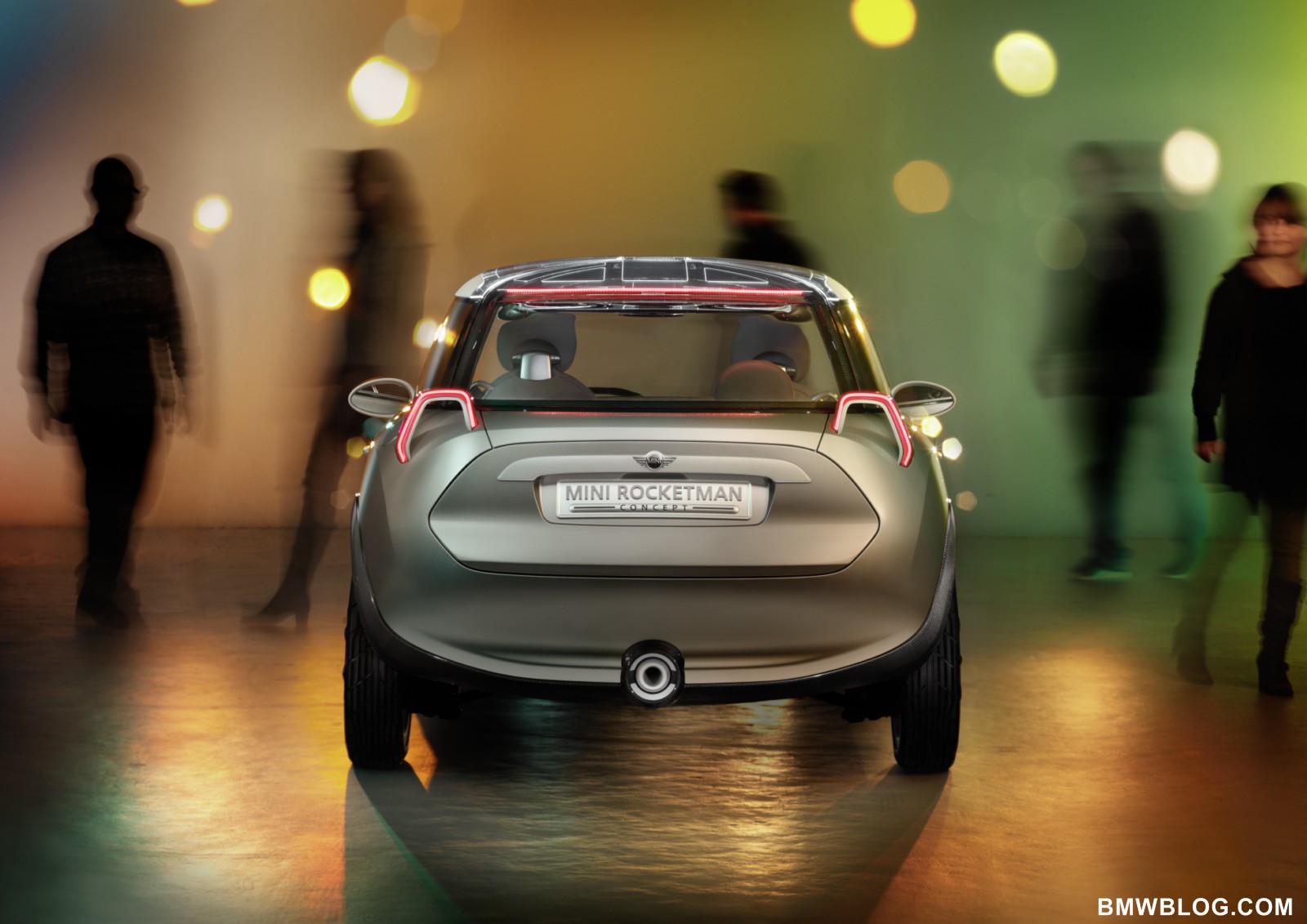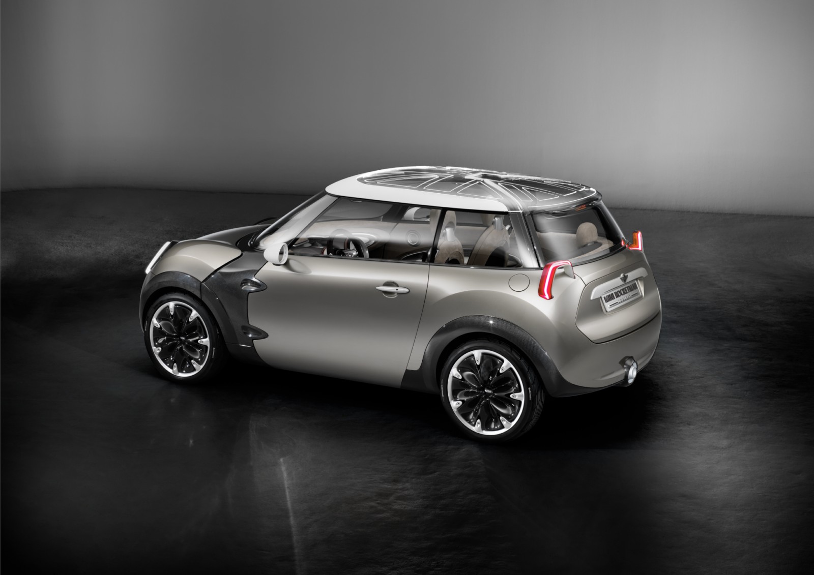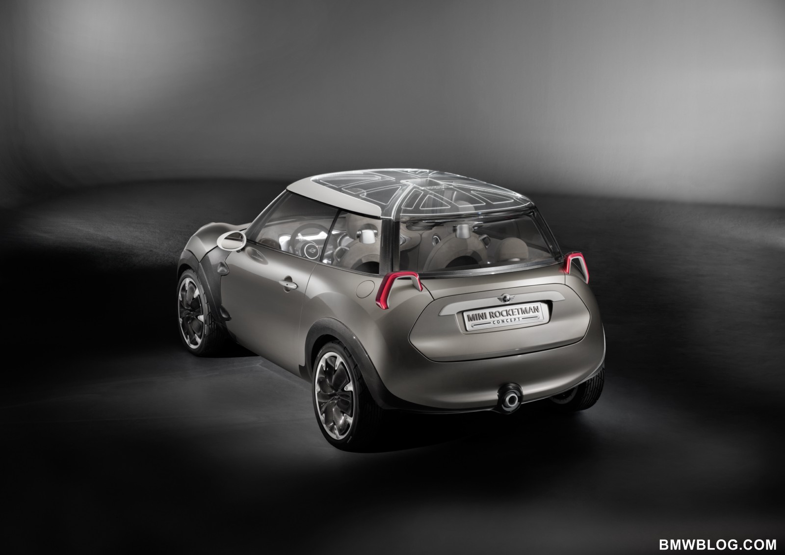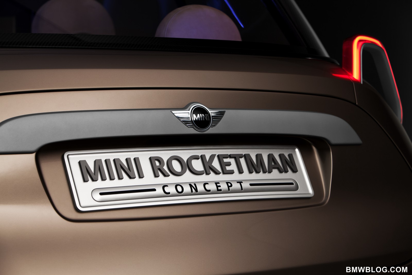 Projector-style rear lights, transparent and illuminated glass for the roof.The rear lights of the MINI Rocketman Concept have a trapezoidal stirrup design – into which all the light functions are integrated – and work using projector technology. The lamp assembly projects the rear and braking light and the light for the direction indicators onto the car body. The high-output LED units used for the lights ensure that even this indirect illumination concept produces the accustomed intensity of light that