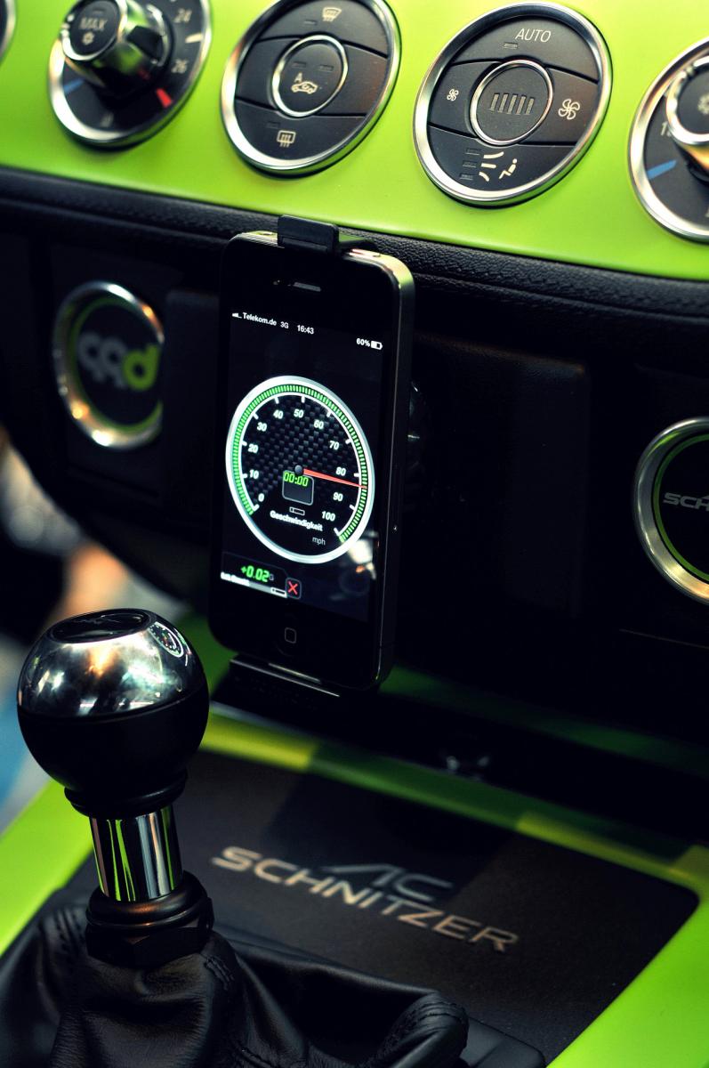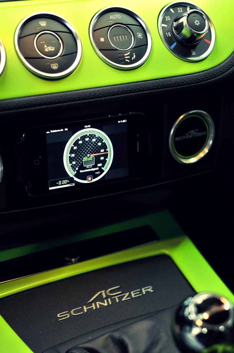 Naturally all safety elements are retained such as ABS, airbags and ESP. The multimedia world too is not lacking thanks to the Apple iPhone4 integrated into the vehicle. This gives access to all data from the on-board computer. So the actual fuel consumption, or for example the function of the particle filter can be checked. Music, telephone, navigation, handsfree or internet complete the overall experience in the AC Schnitzer 99d.