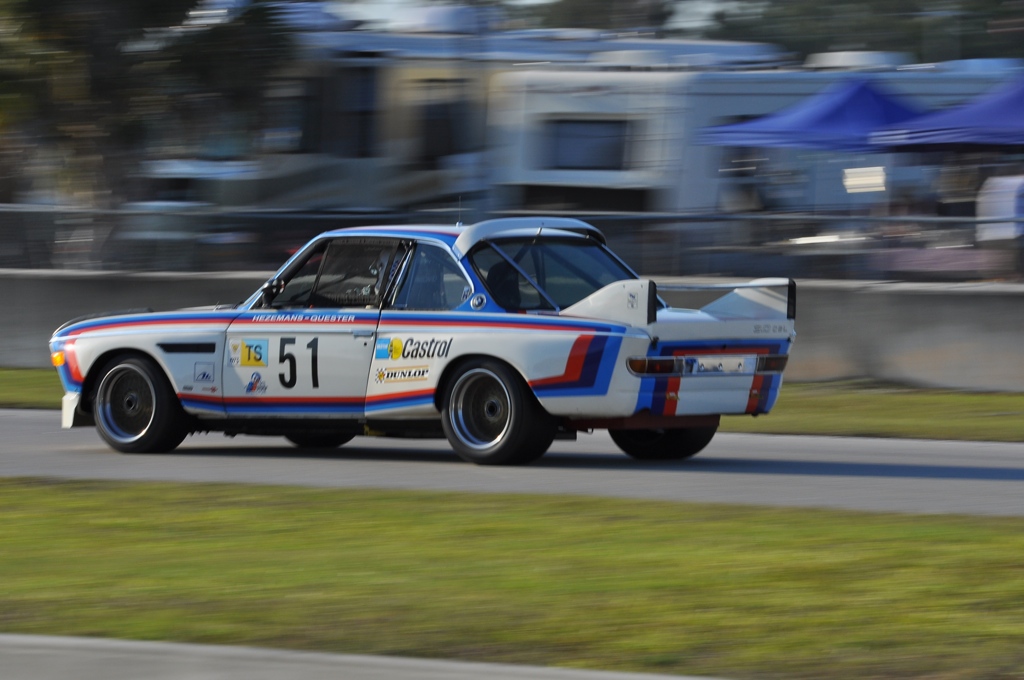 For those that haven’t been or seen it on television – and it’s pathetic how little coverage this race gets by comparison to NASCAR races – Sebring is sort of like a reverse Superbowl for sports cars, coming at the start of the season versus the end, but with just as many people present and perhaps more beer – akin to the major endurance races in Europe like the 24 Hours of Le Mans, Nurburgring and Spa. In the paddock area, there is a smorgusboard of racing gear, photos and paintings, food and beer stands – literally anything you could want to eat or drink is available. Perhaps this is like Bourbon Street mixed with an endurance race? Either way, I ignored the temptations of the delicious beer and moved onward toward the pitwall and over the pedestrian bridge and snaked my way through tents and campers to the BMW CCA’s incredible hospitality tent set up alongside the track between turns 6 and 7. There we met up with Stephen Maguire, our buddy with United BMW of Roswell, and Mike Maguire, instructor from the BMW Performance Driving School. After a quick reintroduction and seeing some excellent examples of Bavarian machinery from the last 40 years, I piled into the front seat of a beautiful Alpine White E92 M3 Competition Package to do a BMW CCA parade lap around the historic venue.