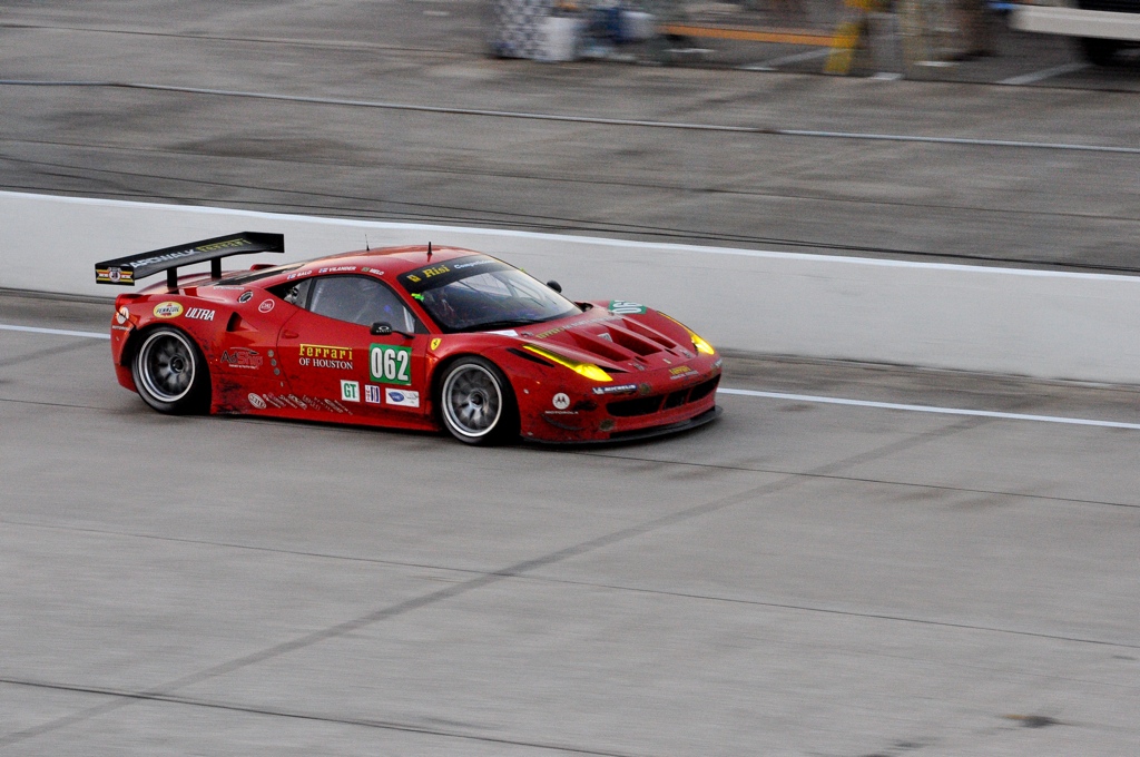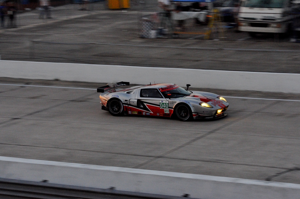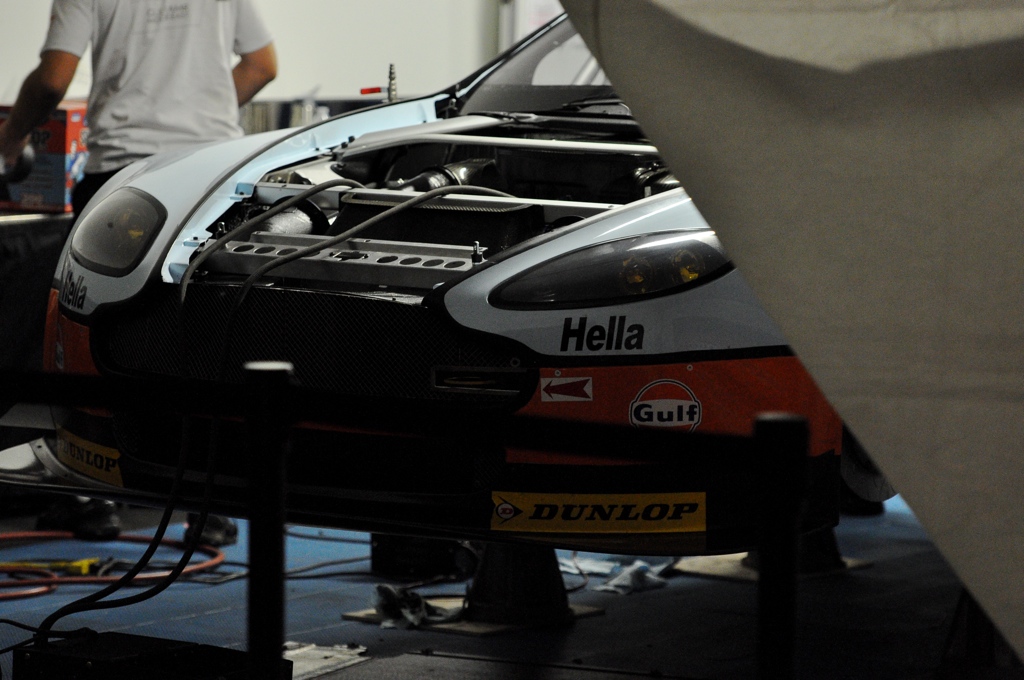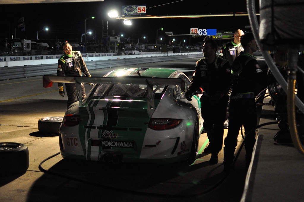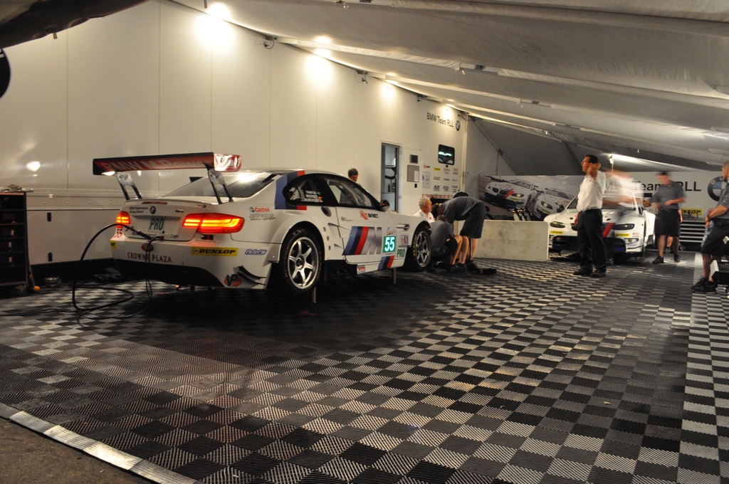 Once dinner concluded, I wandered the paddock, observing the team mechanics tirelessly working away at their cars in an effort to give their drivers the best possible machine for the next day’s race. Ironically, BMW had cinched up their operations and had both cars prepped by about 10:30PM Friday night – one of the first GT teams to wrap up and close down operations for the day. Creeping through the paddock I found the Risi and Patron Tequila Ferrari 458GT’s in various states of construction – as were the Flying Lizard Porsche GT3 RSR’s who looked to be testing the headlamps on their car. The West Racing Gallardo looked to be in good shape until I overheard a mechanic tell someone that they were still waiting on a part which wasn’t scheduled to arrive 2AM Saturday morning. It would be a day of little to no rest for the rookie team.