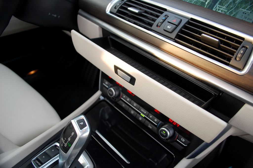 After some hard punting around Southeastern New York state, I found I really enjoyed the 550i GT and my initial skepticism was beginning to wash away after a few hours behind the wheel. Too bad it was time for a driver change at a petite tea house inside of a small village in New York. As a passenger in the 550i GT, I was still in the one of the best seats in the house. It gave me time to appreciate the two-stage, Olympic-pool sized sunroof and the overall aesthetic and comfort of the interior. Much different from most modern BMW’s, the interior feels very open and light, a much more accessible greenhouse than I can remember driving in a new BMW in quite some time. In scanning the interior, it felt very cohesive yet had an incredible amount of room. The design is top notch and flows well from the matte wooden dash, wrapping around and down through the frameless doors, from front to back the design feels very succinct. The swooping lines and materials of the interior feel like a very big step up over the E60/E65 as the lines are not sharp and slashing and feel more conducive to a comfortable atmosphere.