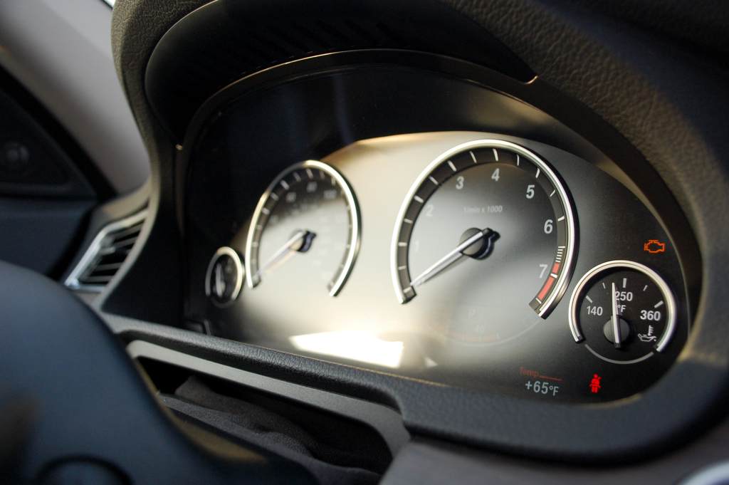 However, I digress. The first thing you notice in modern BMW’s is the level of information at your finger tips on the displays around the speedometer and tachometer. There’s almost too much to take in when you’re driving and I found myself hunting for information more than being able to quickly look down at the gauges. However, the new interface has been designed to keep your eyes off of the i-Drive screen and facing forward and it does that part very well once acquainted with the systems. Coupled with the improved scrolling and sub-menu controls on the steering wheel for things like navigation and music menus, I found it very easy to scroll through songs on my iPod without the need to take my eyes off the road as songs cycle through the bottom right corner of the display. This integration of i-Drive and some of its functionality into the display makes the system much less of a distraction than previous iterations and you find yourself successfully navigating through to what you need versus trying to hold the wheel and watch the road while scrolling through endless menus. An interesting aside to the display is the small “Efficient Dynamics” mete below the tachometer that works similar to a full efficiency gauge with a blue area and battery logo. When the driver lifts from the throttle or brakes hard the gauge registers up into the blue region of the meter which BMW told us is the battery being charged up to recapture energy. However, this isn’t similar to KERS from Formula One that adds horsepower but just a means of recapturing energy for the battery.