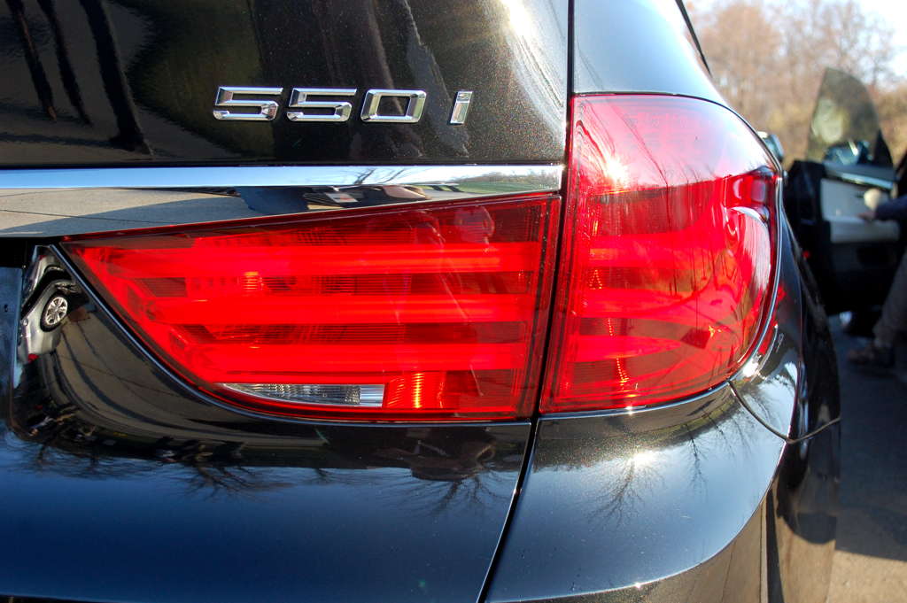 Which brings me to the suspension and overall driving feel of the car. The majority of the cars to test were equipped with the Sports Package, and as an enthusiast, I have to say that there is no other way to go. Our car came equipped with the optional package and the 20 inch wheels which fill the wheel wells nicely. Yes, our car came with the run flats but that has been beaten to death so let’s move on. One wonderful feature that the 550i GT had was the adjustable suspension that comes from other BMW’s like the 750i with a simple button on the console by the gear lever that can be thumbed up or down for the 4 pre-determined suspension settings: Comfort, Normal, Sport and Sport+. What’s nice is that the active steering system is linked in with the suspension setting so the steering feel will react differently depending on what mode is selected on the suspension. In comfort mode? Great your steering feels light but effective. Want to carve corners? Then the steering firms up a good bit and has a solid, weighted feeling behind it when one of the Sport modes is selected. Honestly, I despised the active steering system in the E60 when it was first introduced but when packaged with an active suspension this execution of it makes for a very compelling case.