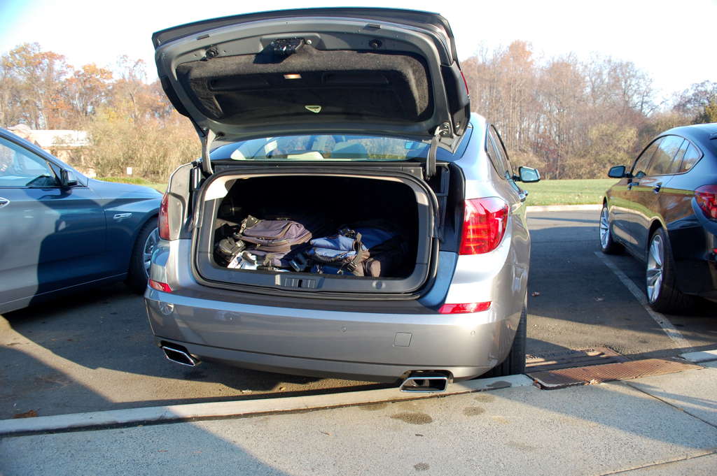 The next morning, when it came time to head out to spend the day with a 550i GT, I was lucky enough to be the driving the first leg of the trip and so I snuggled in behind the wheel. However, first we had to load all of our camera gear into the trunk. BMW has a trick two-stage trunk with hidden in the GT’s rump, with the first stage acting like a normal trunk that doesn’t give access to the interior. The second stage is a full 5th door that gives access to the rear seats while permitting the owner to put taller objects into the back or providing unrestricted access to the trunk space. If you need more trunk space then feel free to move the rear seats forwards to adjust for additional room. After loading most of our stuff into the trunk, I was surprised by how much room we still had yet to take up. This was the 5 GT successfully demonstrating its versatility for taking long weekend trips or heavy use in around-town errands.