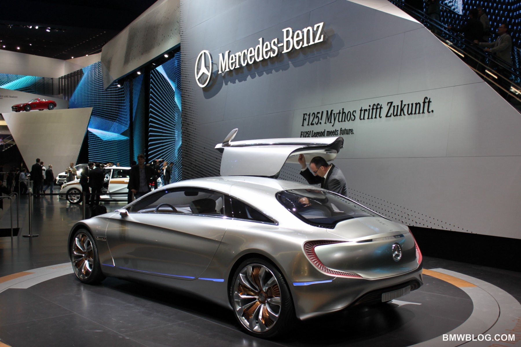 First, Mercedes-Benz brought out the F125!, a plug-in hydrogen supercar in a concept form. The F-125! uses lithium-sulphur batteries, a body comprised of several metals and composites, and a series of high-tech gadgets like “touch, speech and hand gestures,” semi-autonomous driving and three-dimensional display.