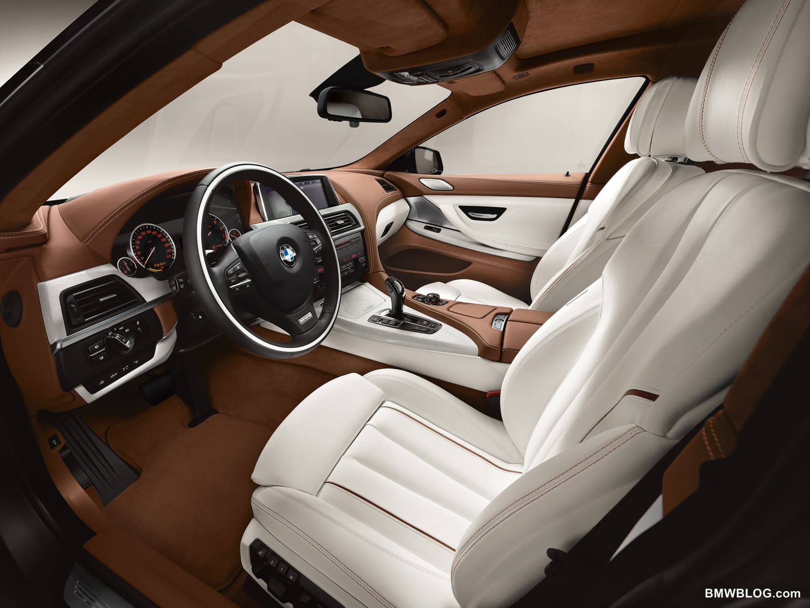 And now to the interior, which is without a doubt one of the treats of working on this car. The swoopy interior of the standard 6 series has made its way into the Gran Coupe – but the Gran Coupe has a few advantages to add! If so optioned, the 6 Gran Coupe can be optioned with buttery leathers and plaids, and then registered and built.