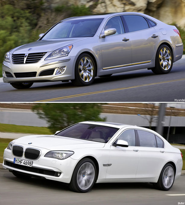 BMW is launching an all-new 5-Series sedan this summer, two years after Hyundai launched its $33,000 Genesis sedan, which the Korean company modeled after the outgoing 5-Series. Autoblog, a sister site of AOL Autos, noted at the Genesis launch in 2008: “In one breath, the Genesis will simply compete head-to-head with the Infiniti M, Lexus GS, Lexus ES, Acura TL, and Acura RL [while] the German buyers want their badge; the American customers are true to their flag.” Indeed, few were willing to say that Genesis had hit the BMW Roundel bulls-eye on the first try. (Or second, if you will: Hyundai’s Veracruz SUV, costing roughly $37,000 loaded, was launched for the 2007 model year. Its only shortcoming when compared to its luxury competitors has been slow sales.)