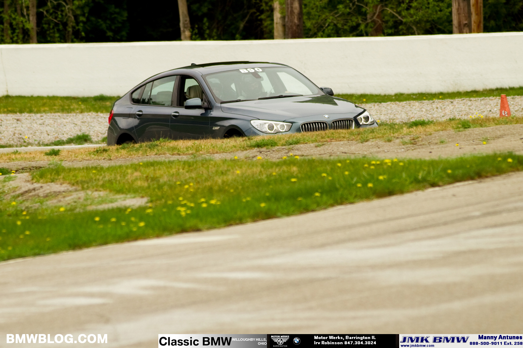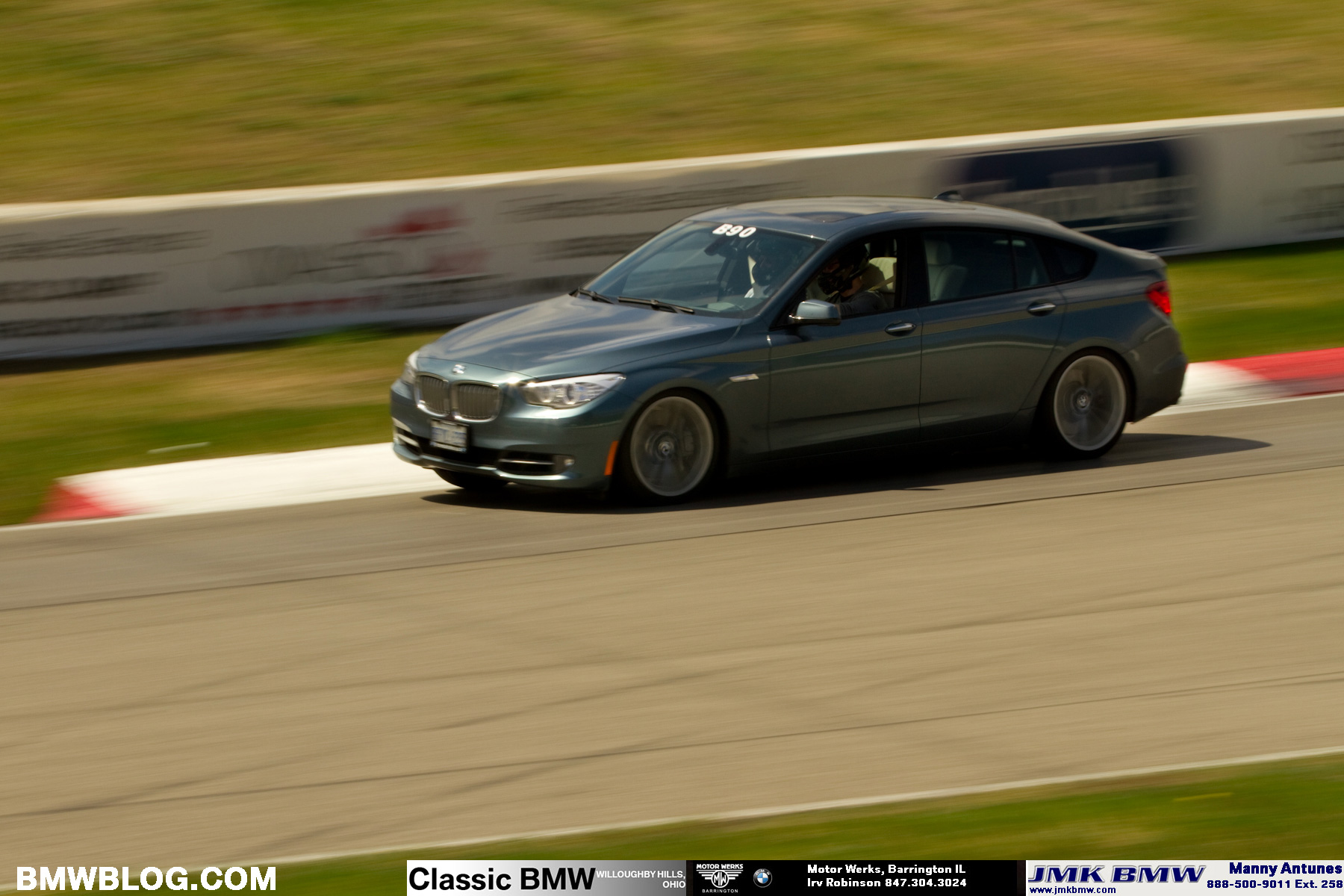 Hard on the brakes and it’s already time for another lap! Car after car is blue-flagged and passed by this large, practical “family car” – including several BMW sports cars lapping the track!