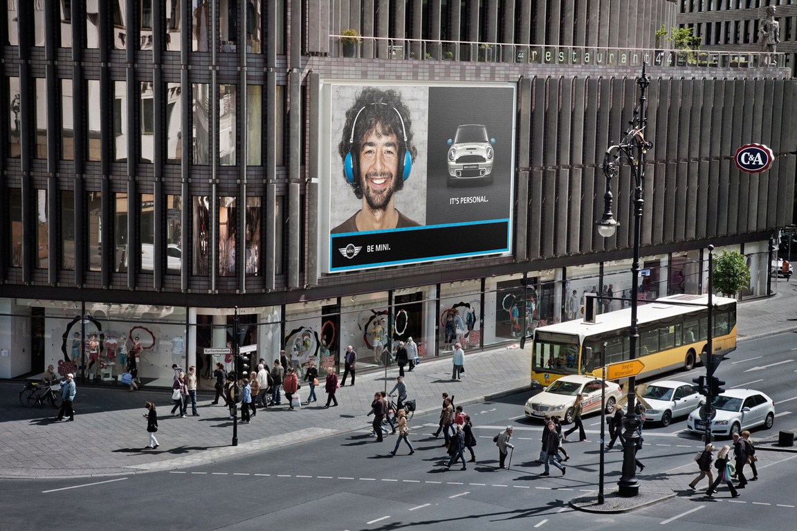 There are four colours and four models to choose from: the MINI Hatch, MINI Convertible, MINI Clubman and MINI Countryman. Next, participants appear in real time on a 104-square-metre video screen together with their photo and personalised MINI model. The MINI campaign was set up overnight from 15 to 16 May and continues until 29 May 2011 at the intersection of Kurfürstendamm and Joachimstaler Straße. It is being run in parallel as an international campaign at http://www.facebook.com/MINI.